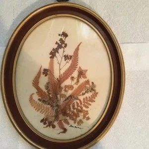 It is a lot of two hand-made dried leaf and flower pictures with oval-shaped frames.