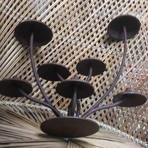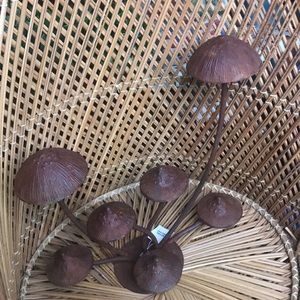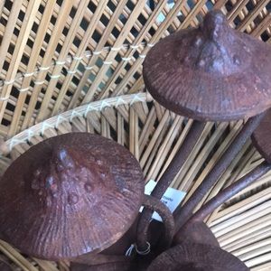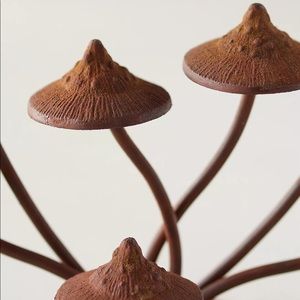 Crafted from iron that will develop a natural patina over time, this decorative Anthropologie piece is made up of a grouping of mushrooms. Adds a whimsical flair to your decor and would surely be a conversation piece. Large sized, heavy duty and extremely durable.