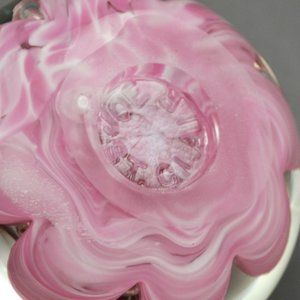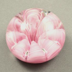 Joe St. Clair Art Glass Crimped Pink & White Small Paperweight