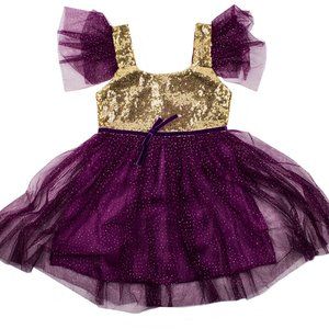 Gold Sequin Purple Tutu Princess Ballerina Party Little Girl Dress