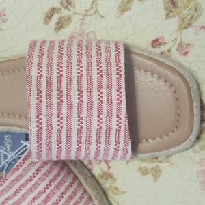 Beachy summer slides. Universal Thread, size 9. Red and white, rope accent around the sides. Brand new.