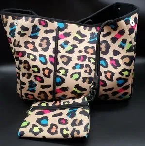 SOLD🐆 Neoprene Large Tote Bag with Pouch
