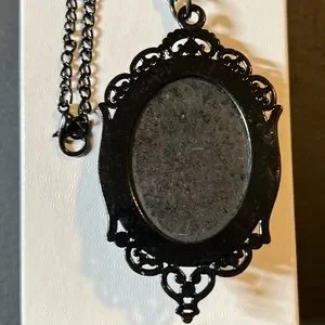 Skull flower day of the dead cabochon necklace. Gorgeous design 28” chain. Pendant size: just under 2.5” long x 1” wide. Black necklace chain with lobster closure.