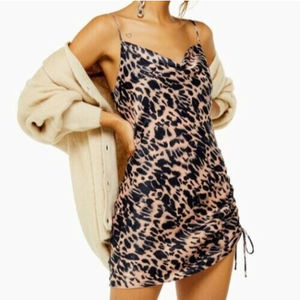 TOPSHOP Mini Slip Dress size 10 Brown Black Leopard Animal Print side cinch