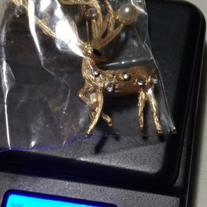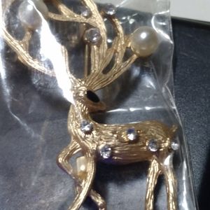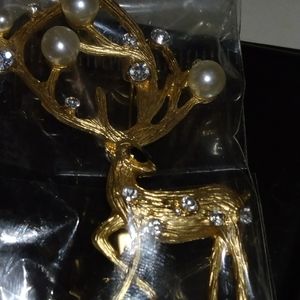 new without tag brooch deer with pearls an rhinestones