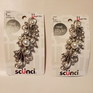 Scunci Real Style Hair Barrette QTY 2 with Pearls & Rhinestones