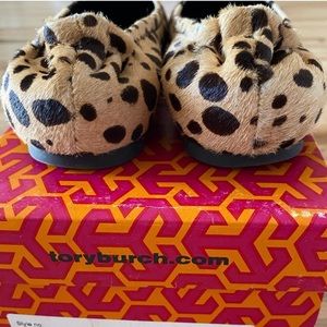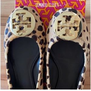 🚫SOLD🚫🌈🏵Tory Burch🏵flats shoes/cheetah coconut gold/reva hair calf leather