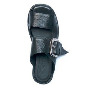 Ernesto Dolani Modern woman Black leather sandal with strap and buckle
