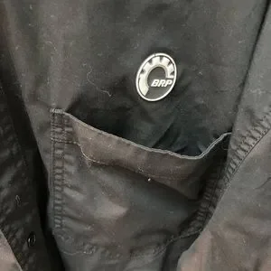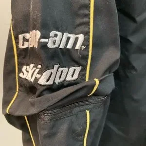 Can/Am Ski-Doo racing shirt is in mint condition. There’s no wear, snags, tears, or stains. Nice quality material. It is black with some decorations and nylon zippered-out sleeves. There is a “BRP” rubber decoration on the chest. WWW.BRP.com #Can/Am #racing #Shirt #outdoors