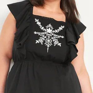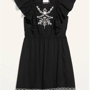 Flutter-Sleeve Embroidered Tie-Back Mini Dress - NWT