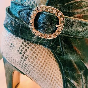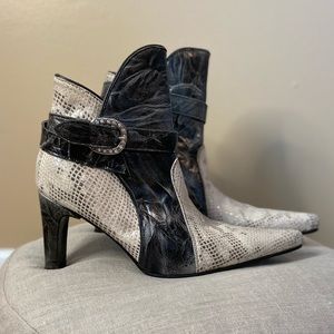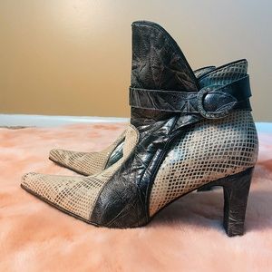 ✨Gorgeous Dos de Oro, Lady Diva snakeskin ankle boots with tiny diamonds on the buckles. Size 6. Great shape - super cute!✨