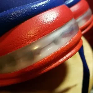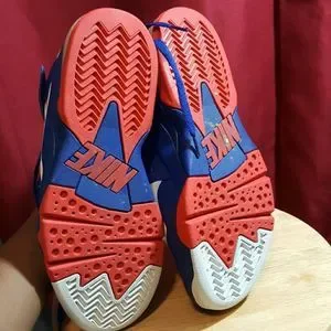 Philadelphia 76ers colors (red,blue,white)...used..bottoms are dirty from wear..size 10..no original box but will come in a box...shoe looks good despite toe creases from wear and air bubble yellowing