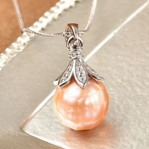 Rare peach Edison pearl pendant and necklace in platinum over Solid Sterling Silver. 18"