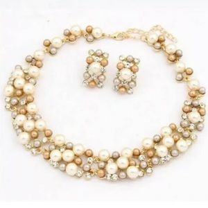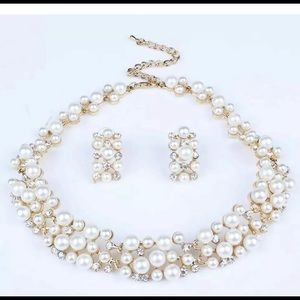 🍀New Crystal Pearl Necklace Earrings Jewelry gift Set