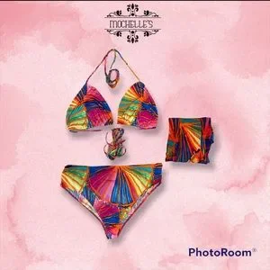 Multicolored bikini set, with cover up included. Size 4XL