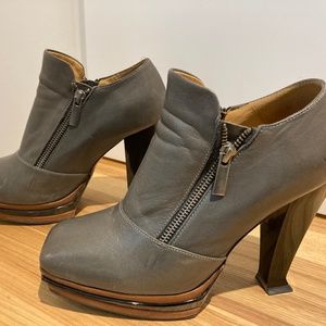 Great shoe. Quality construction. Comfortable for a heel - can actually wear all day. You can wear them with a skirt, jeans, or dress pants.