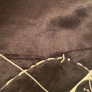 Only flaw is a light slice in the back as shown, goes through the end pieces of embroidery but doesn’t break the embroidery at all