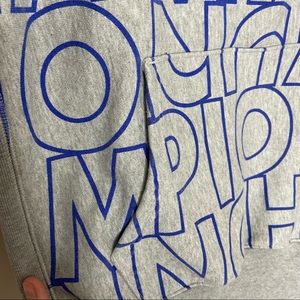 Gray with blue oversized logo print sweatshirt. Heavier material.