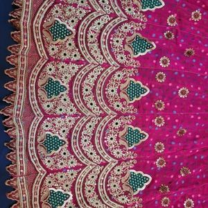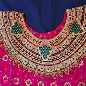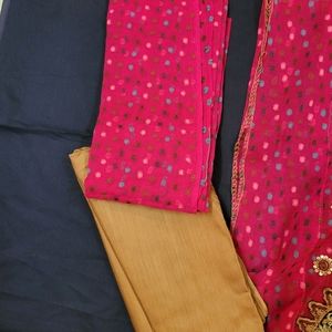 Bought this from the Global Shopping Festival in Dubai. Comes with Semi Stitched Kurta, Material for bottom, Extra Sleeves and Embroidered Dupatta. There is slight cut on the edge. Its not a defect, it is how the cutting was done. This will easily go under the stitching