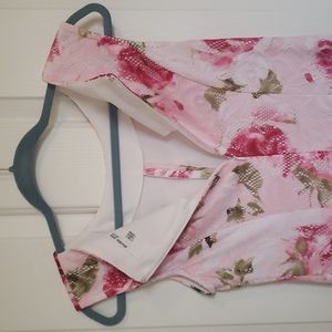 Spring/summer dress. Sleeveless lace pink and floral dress. Zipper on back with eye & hook. Only worn once.