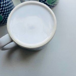 Super Cute Vintage Blue Ribbon Goose Cottage/Farm House Coffee Mugs 11oz Set of 4