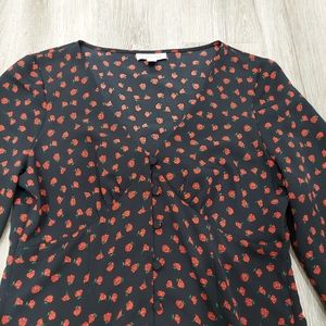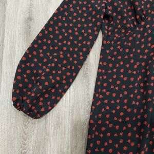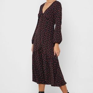 NWOT Topshop Black Floral Rose Printed Midi Dress