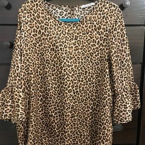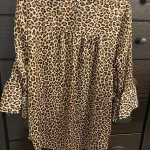Ces Femme leopard print top with bell sleeves. Size medium but runs big-flowy around waist. Buttons in back. Size medium.