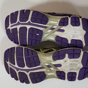 ASICS Gel Kayano 21 Women's Running Shoes size 8 GUC. Colors are Grey, medium purple, lime green, silver and white. Super comfortable and supportive running shoes.