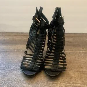 vince Camuto gladiator Stiletto Strappy Dressy Black Sandal Size 10.