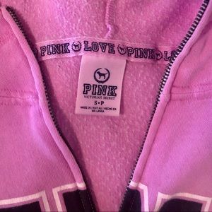 PINK Victoria’s Secret pink zip up hoodie with black lettering in Small