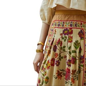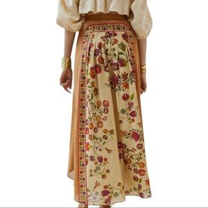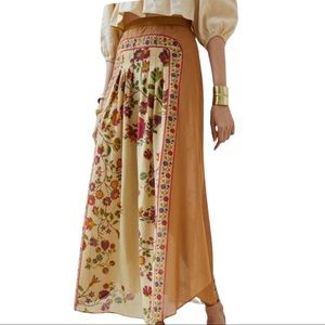 New Mes Demoiselles x Anthropologie Pleated Dahlia 4 & 6 Tan Red Floral Maxi
