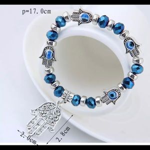 Beautiful bead and charm Hamsa Bracelet in a gorgeous teal midnight blue color. Beads are iridescent and have an aurora effect. Gorgeous! Gift-Boxed. Brand New. Stretch , one size fits all.