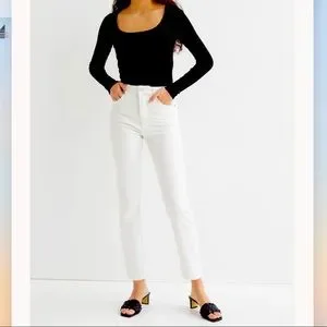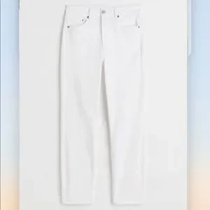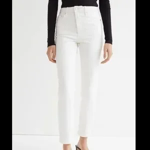 5-pocket, ankle-length jeans in washed denim. Extra-high waist and slim legs. Made partly from recycled cotton.