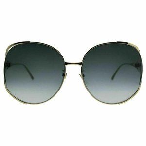 Gucci Gold Frame & Grey Gradient Lens Gg0225s-001 Women's Round Sunglass…