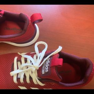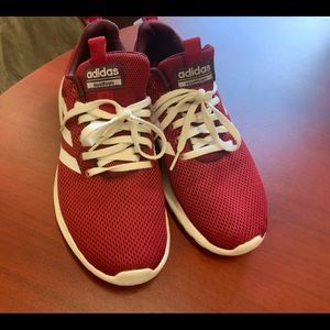 RED AND WHITE ADIDAS SIZE US 7 ATHLETIC SHOES. GENTLY USED. SOLD AS IS. NO MAJOR SCUFFS OR MARKS. CLEANING OUT CLOSET SO BUY FOR CHEAP NOW!
