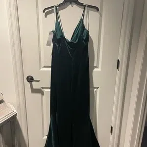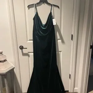 Beautiful hunter green velour bridesmaid dress, size 20W. Unaltered + never worn. In perfect condition with tags. It is a gown and will be to the floor.