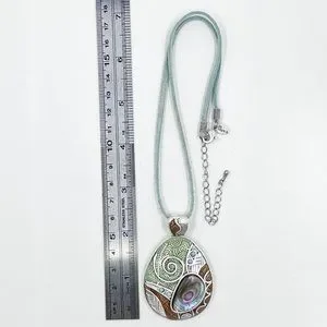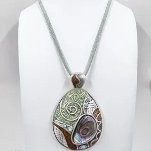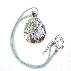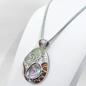 πHPπ Lia Sophia Abstract Enameled Abalone Silver Tone Pendant 16β Necklace