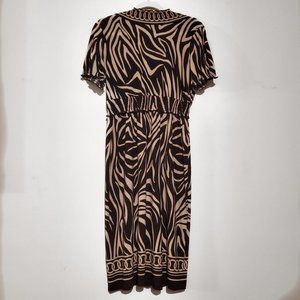 En Focus Studio Brown and Cream V Neck Zebra Print Dress Size 10