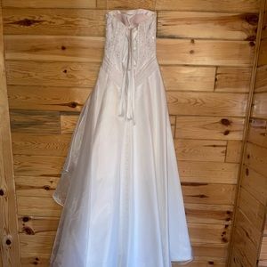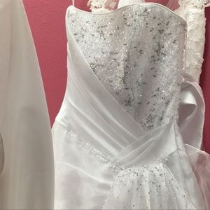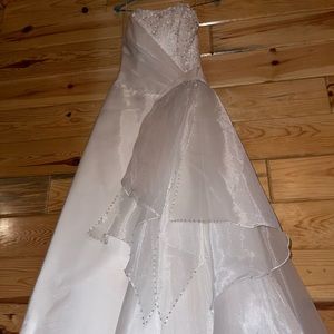 Stunning Maggie Sottero wedding dress. Worn once. Professionally cleaned and stored. Excellent condition. Covered in Swarovski crystals. Corset back allows for a size range of 0-6.