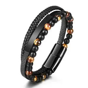 men tiger's eye cowhide making stainless steel Bracelet