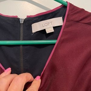 LOFT Sleeveless, Beautiful, A-Line Dress, Navy & Burgundy Design