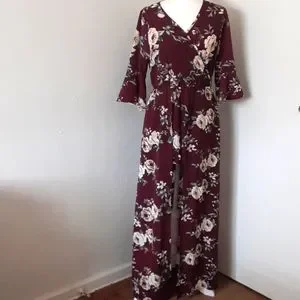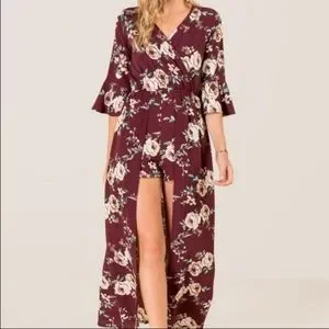 Miami Long Maxi Dress Romper Burgundy Size Large
