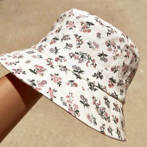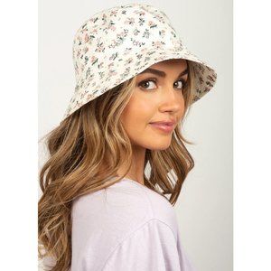 NEW Ivory Ditsy Floral Print Breathable Airy 100% Cotton Packable Bucket Hats