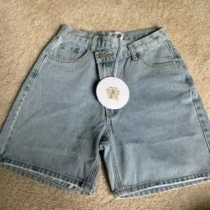 Princess Polly Brontë beach denim asymmetrical shorts