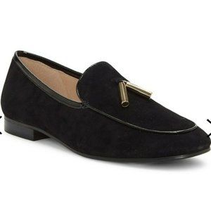 Make your outfit pop in these suede loafers with goldtone hardware.