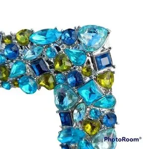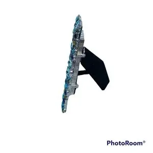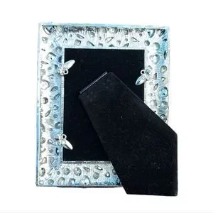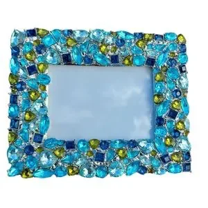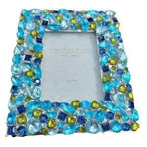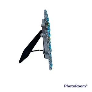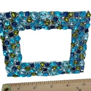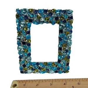 Various shades of blue & green embellished 3D dimensional design picture frame with metal and felt backing. Good pre-owned unused condition with limited handling.