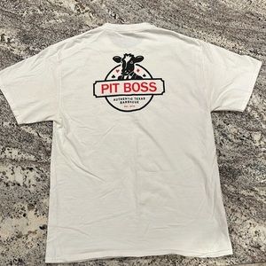 This T-shirt was worn very little. Came from the pit boss barbecue company. Approximate measurements are 20 inches pit to pit and 27 inches from shoulder to bottom of T-shirt. This is a bright white. Smoke free and pet free home. Same day shipping