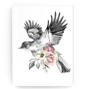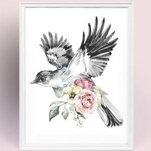 Watercolor Illustration Cute Bird Wall Art Print Poster UNFRAMED
