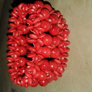**red and brown seed bead elastic bracelet
