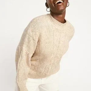 Old Navy Mock-Neck Heathered Cable-Knit Sweater for Women New